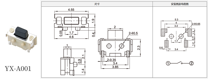 上一篇:YX-A002型号1.8*4.55轻触开关
